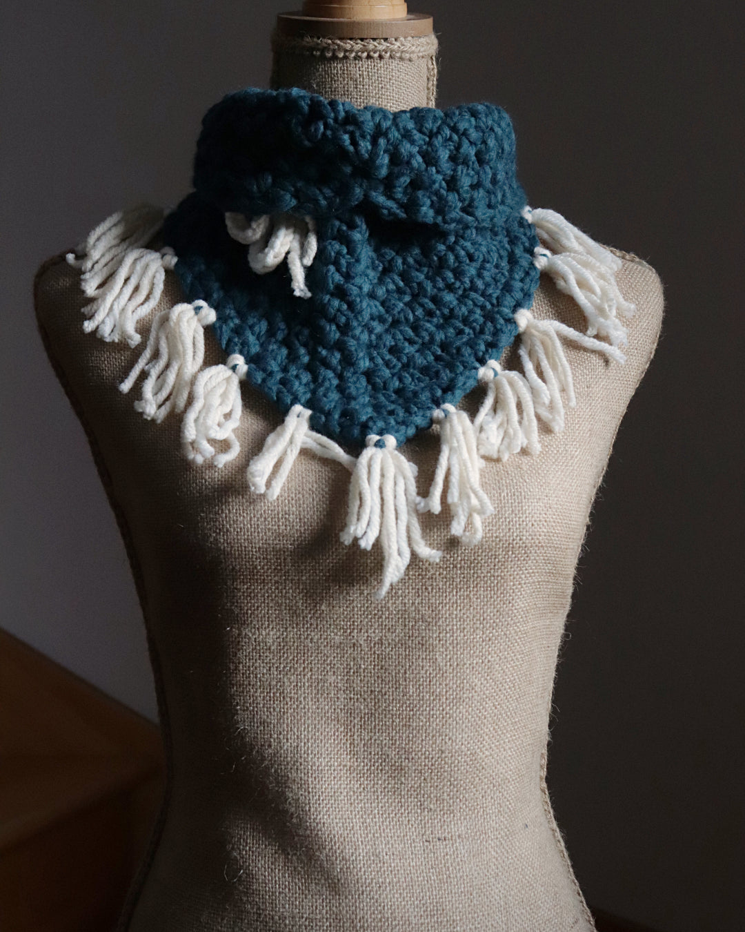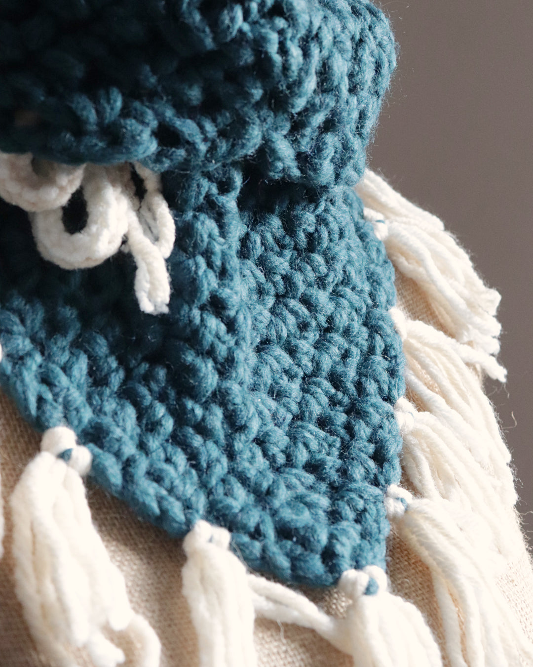 Encre pâle évoque les idées esquissées, les émotions délicates, les traces légères. Ses deux matières se répondent avec douceur, créant un châle discret mais profondément présent.
