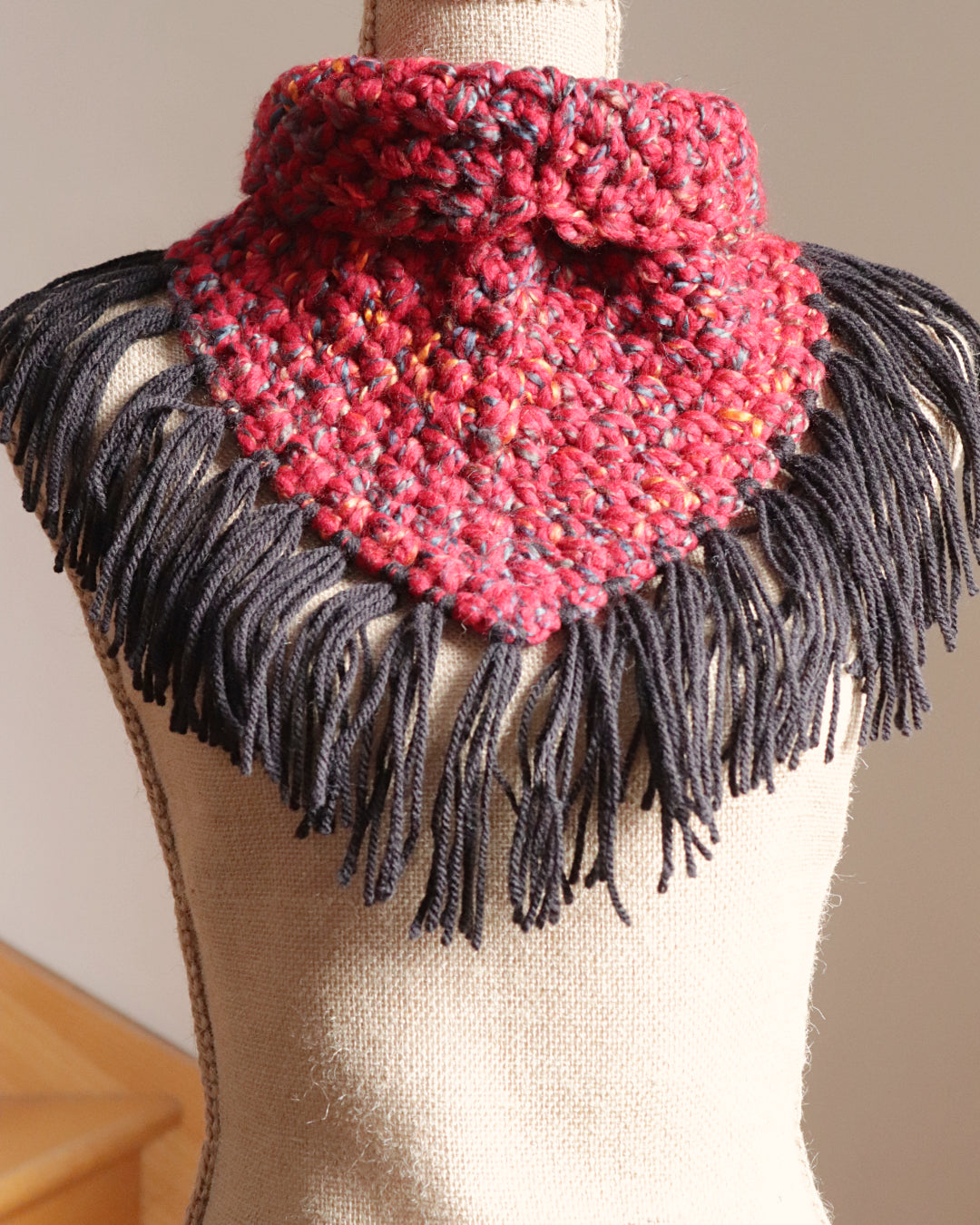 La Trace des songes évoque ces souvenirs fragiles. Le contraste des matières crée un châle aérien et enveloppant, à porter comme une réminiscence.