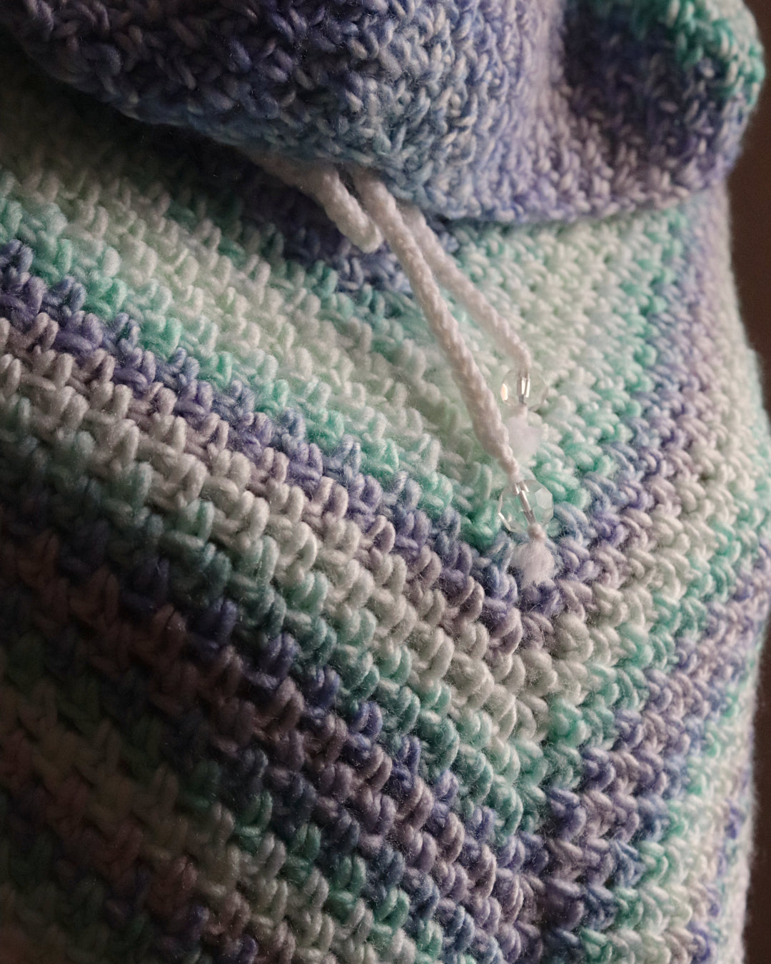 La Veilleuse est un châle pensé comme une présence. Il enveloppe sans peser, réchauffe sans jamais étouffer. Son jeu de matières crée une sensation de cocon, propice au calme et à l’introspection.