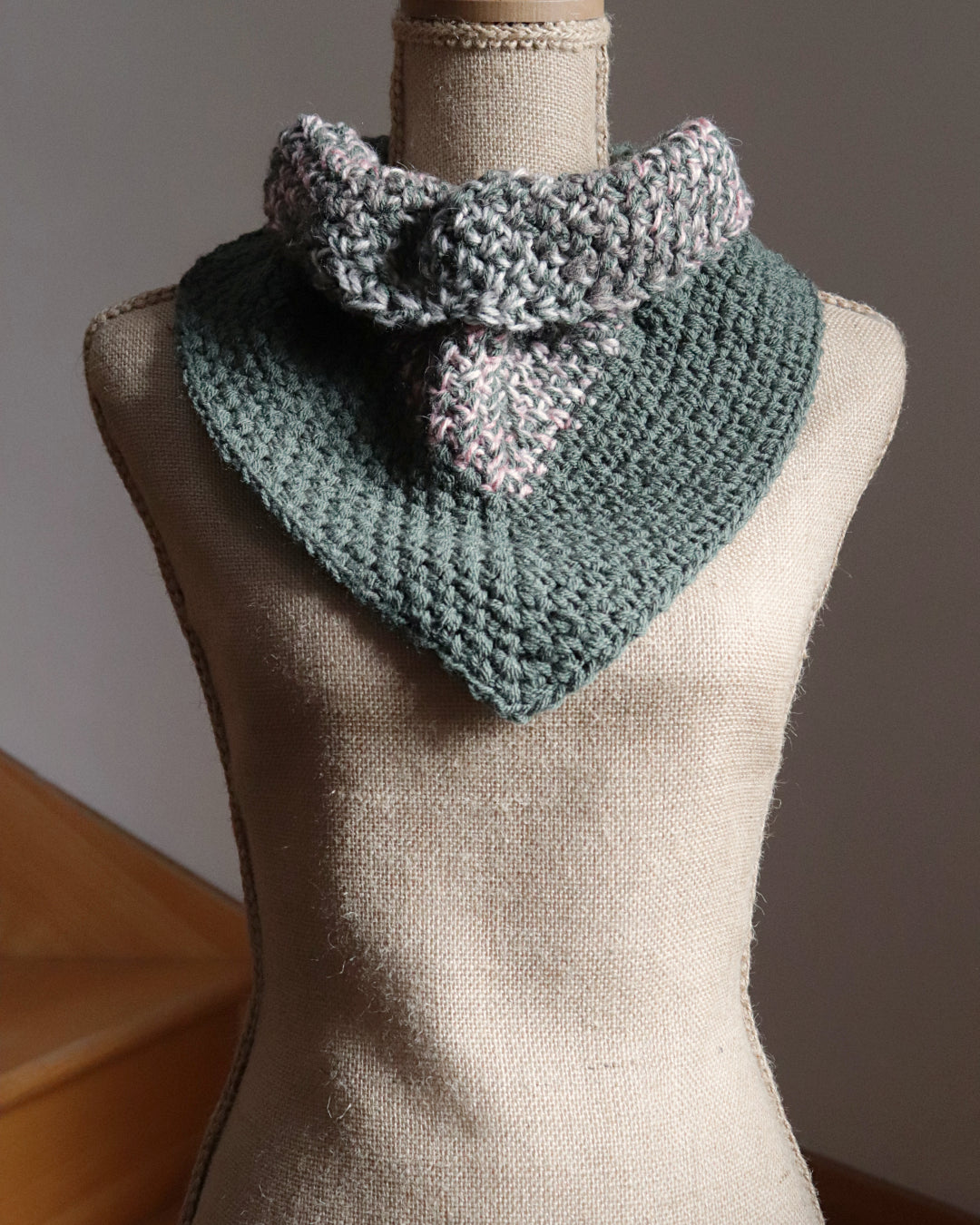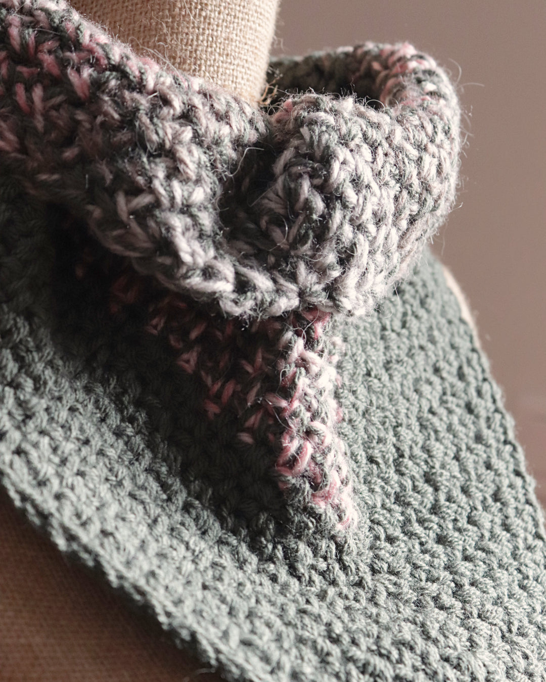 L’Intervalle est un châle minimal et apaisant, pensé pour les moments de pause. Le jeu des matières crée une sensation d’équilibre et de respiration, sans jamais alourdir.